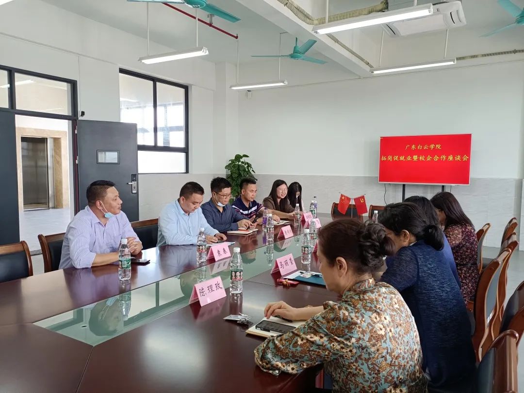 上午招聘活动结束后,协会副秘书长曹金一行代表协会参加《广东白云学院拓岗促就业暨校企合作座谈会》,与学校领导就企业用人需求,人才就业形势进行热烈讨论。深圳代账协会过去几年与白云学院深度合作,去年协会被授予了“广东白云学院企业实践教学基地”牌匾,对此感谢白云学院领导的认可与支持。